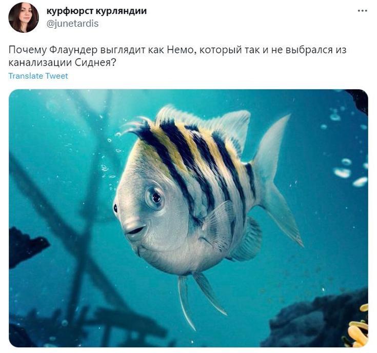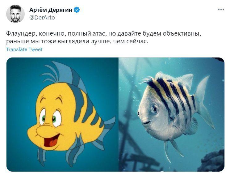 В Twitter активно обсуждают новый облик рыбки Флаундера из игровой адаптации мультфильма Disney и размышляют, как бы выглядел этот персонаж в интерпретации различных режиссёров, от Тима Бёртона до Гая Ричи.